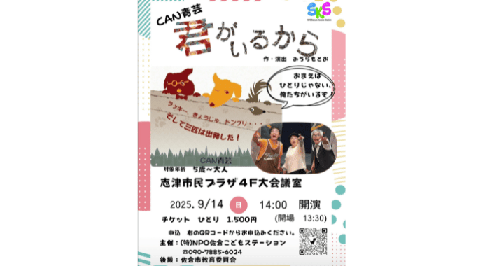 NPO佐倉こどもステーションが主催する、迫力の舞台公演「君がいるから」が2025年9月14日(日)に開催されます。本イベントは、子どもから大人まで楽しめる、心温まる演劇作品です。